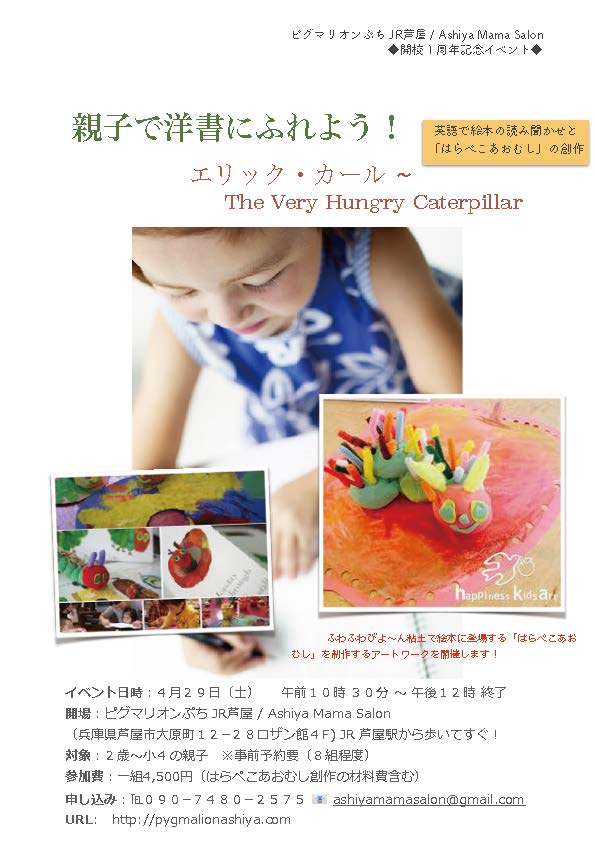 親子で洋書にふれよう! The Very Hungry Caterpillarとふわふわびよーん粘土イベント
